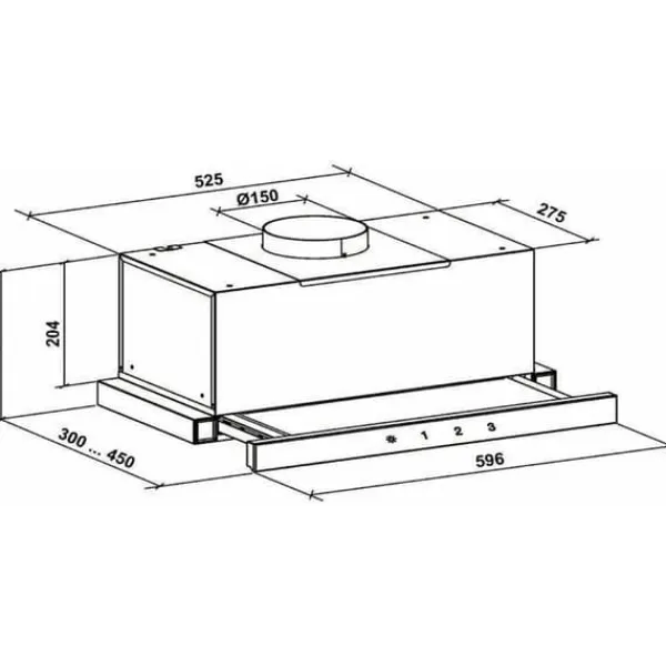 Ramen är i vit metall och fasaden i vitt glas, vilket gör att den kan integreras visuellt i nästan alla kök. Kontrollpanelen är integrerad i glaset. De olika funktionerna för köksfläkten (belysning och nivåinställningar) kan styras via ”Touch Control”-kontrollen.