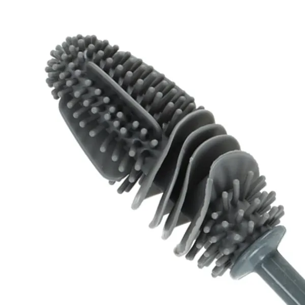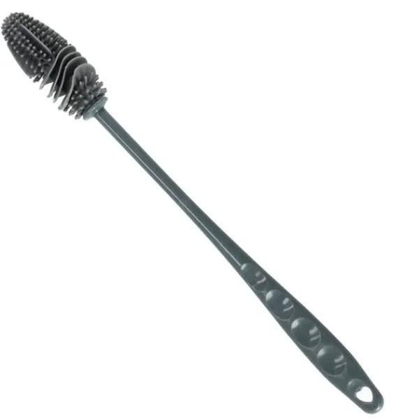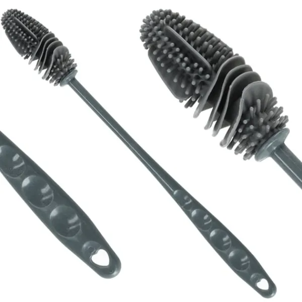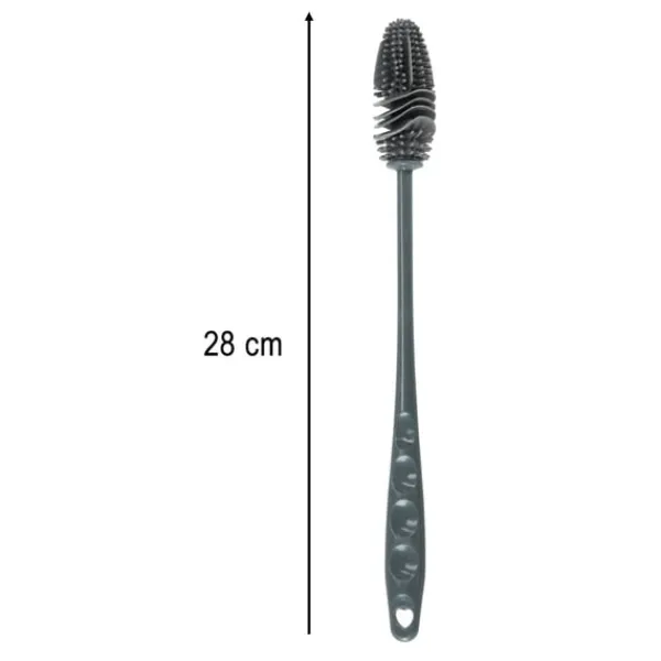 Flaskborsten gör rengöringen enkel och effektiv. Tack vare det flexibla borsthuvudet når den även svåråtkomliga ytor i flaskor, burkar och glas utan att skada materialet. De mjuka silikonpiggarna tar bort smuts och rester på djupet och gör borsten idealisk för återanvändbara flaskor, karaffer och köksredskap.
