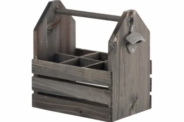 Denna robusta flaskhållare i trendig lantlig stil med en smart integrerad flasköppnare i metall är ett absolut blickfång! Denna trendiga flaskhållare är gjord av kraftigt trä från blåklockans familj (Paulownia) och erbjuder plats för upp till 6 flaskor. Flaskorna är lätta att ta med dig överallt: till terrassen, trädgården, parken eller när du handlar. Det runda handtaget ligger bekvämt i handen och skär inte in i huden. Beer Caddy är den perfekta presenten till festdeltagare och ölkännare för födelsedagar, jul, fars dag och många andra tillfällen.