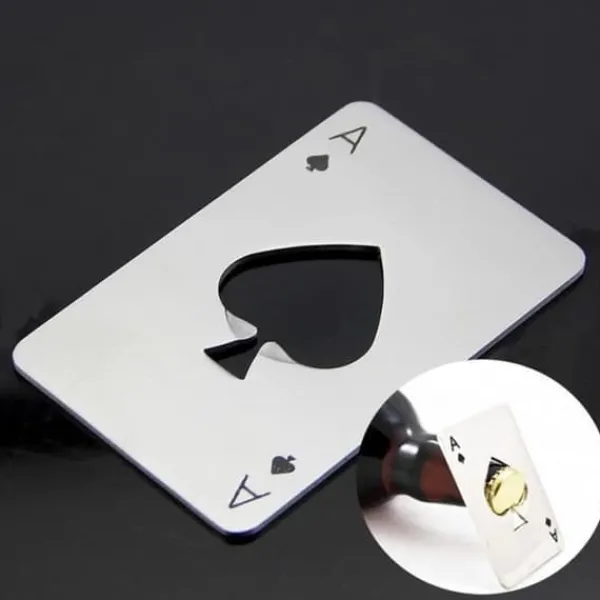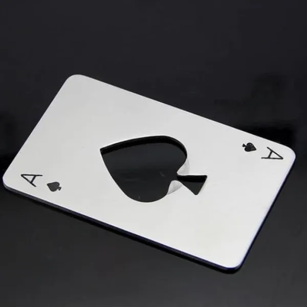 Denna flasköppnare i rostfritt stål från märket Maté är kompakt och passar lätt i din plånbok. Alltid inom räckhåll, den är idealisk för att öppna dina läsk- eller ölflaskor. Mått: 83x54x2MM. Ett praktiskt och kvalitetstillbehör till ditt kök.