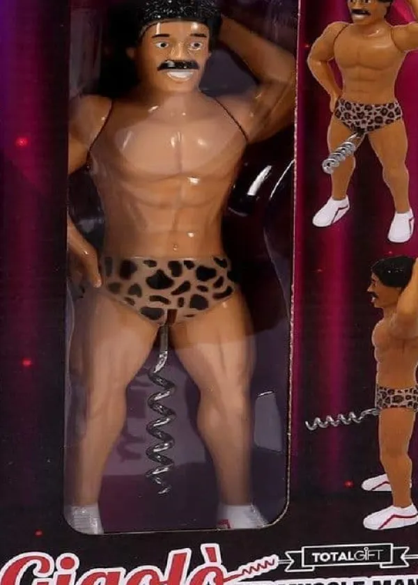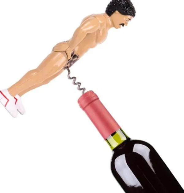 vacker muskulös man mustasch vinflasköppnare.