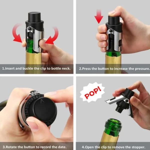 Aldrig mera avslaget bubbel! Denna champagneförslutare håller bubblorna kvar i flaskan ifall du mot all förmodan inte dricker upp allt bubbel. Sätt korken på flaskan och pumpa tills du möter motstånd. Pumpen har även vridbar datum markering för att du inte ska glömma bort hur länge flaskan stått!
