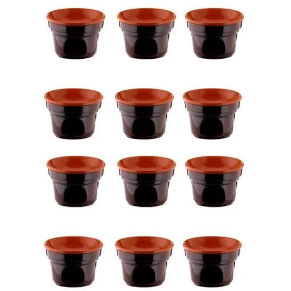 Njut av en läcker bagna cauda med detta set av 12 keramiska fonduegrytor! I terrakotta med keramisk beläggning. Utvändig färg brun, inre naturlig. Blyfri färg 100% certifierad. Lämpliga för tillagning i ugn eller över gaslåga. Diskmaskinsäkra. ERBJUDANDE BESTÅR AV 12 GRYTOR 14CM + 1 FÖRPACKNING MED 50 T-LIGHT LJUS SOM GÅVA.