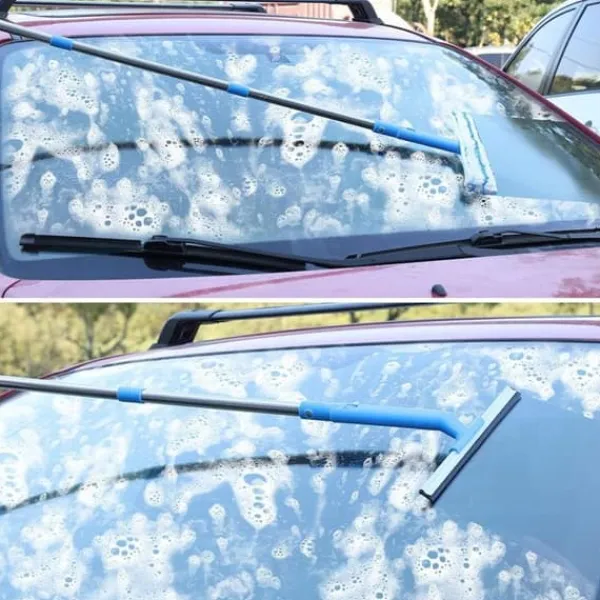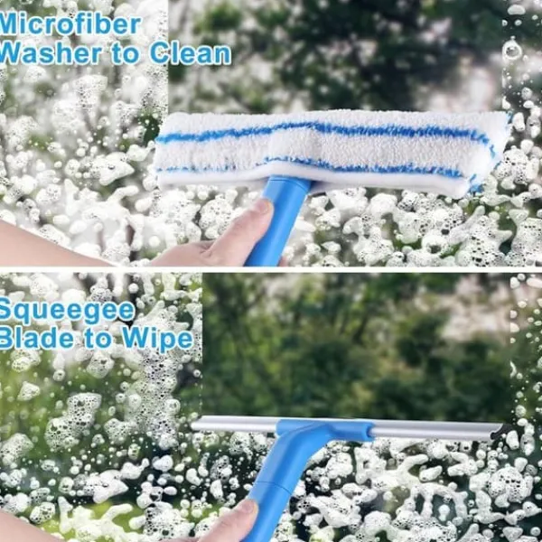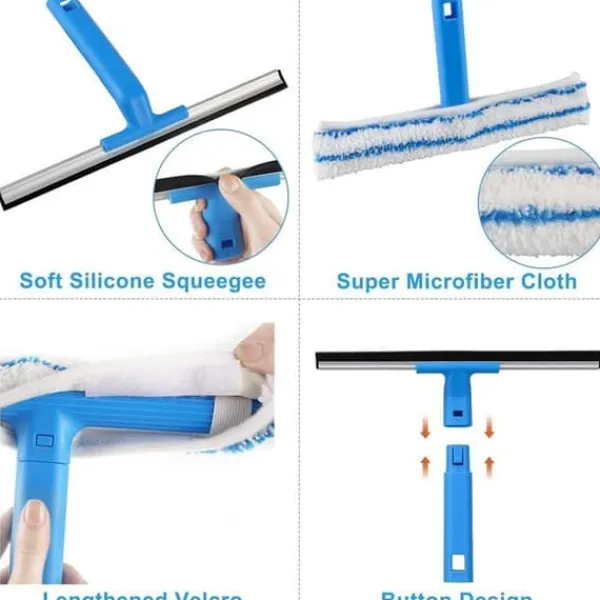Fönsterputssats: Silikonskrapan + mikrofiberborsten + det långa handtaget är det perfekta verktyget för att effektivt rengöra dina höga och låga fönster.