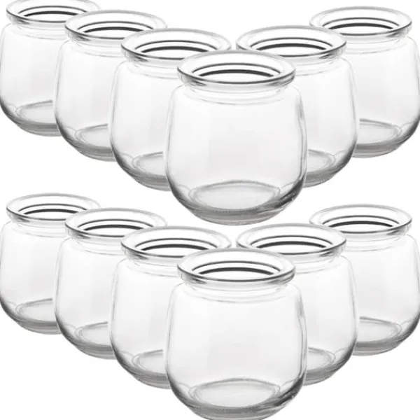 Set med 12 burkar för yoghurt och desserter med en kapacitet på 200 ml – Tolv burkar med enkel form är perfekta för servering av yoghurt, konserver, snacks eller desserter. Burkarna mäter 7,3 x 7 cm och har en kapacitet på 200 ml.