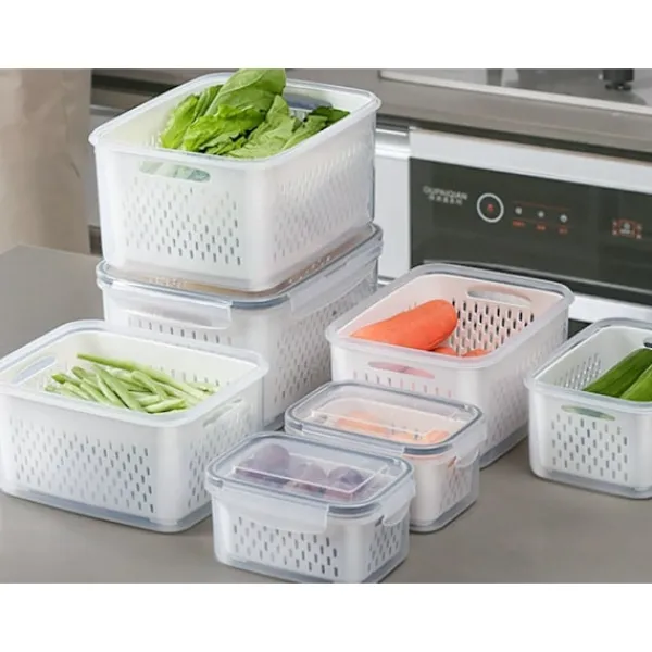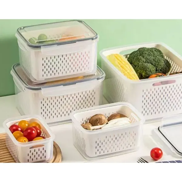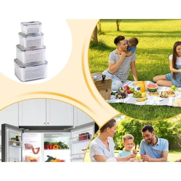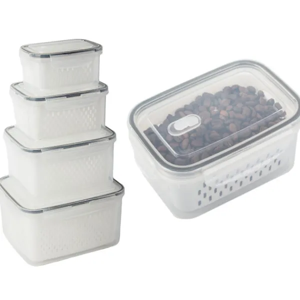 Are you looking for functional and reliable food storage solutions? This set of 4 containers has been designed to make everyday food storage and organisation easier. Ideal for home, work, school and travel, they ensure convenience, safety and freshness for longer.They are resistant to kitchen conditions. Thanks to their thoughtful design with removable baskets, it is easier to keep your refrigerator and cupboards tidy.