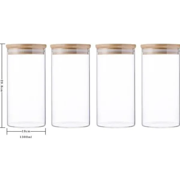 Set om 4, Kapacitet: 1300mlx4, Diameter: 10cm, Höjd: 20cm. Ideal för våta livsmedel (såser / sylt / skurna frukter) eller torra livsmedel (bönor / ris / pasta), bakmaterial (mjöl / pulver / salt / socker) etc.