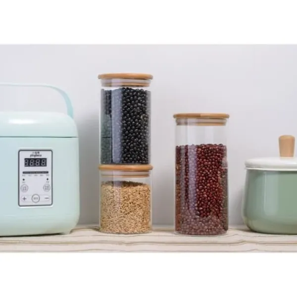 Detta set med 4 glasburkar i borosilikat är idealiskt för att bevara dina livsmedel. Med storlekar från 10x30cm till 10x10cm erbjuder de en kapacitet från 500ml till 1800ml. Varje burk är utrustad med ett lufttätt lock för optimal förvaring. Praktiska och estetiska, de passar perfekt in i ditt kök.