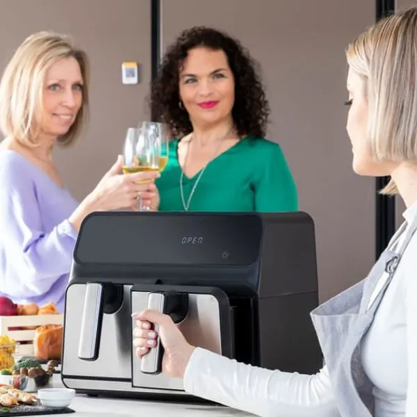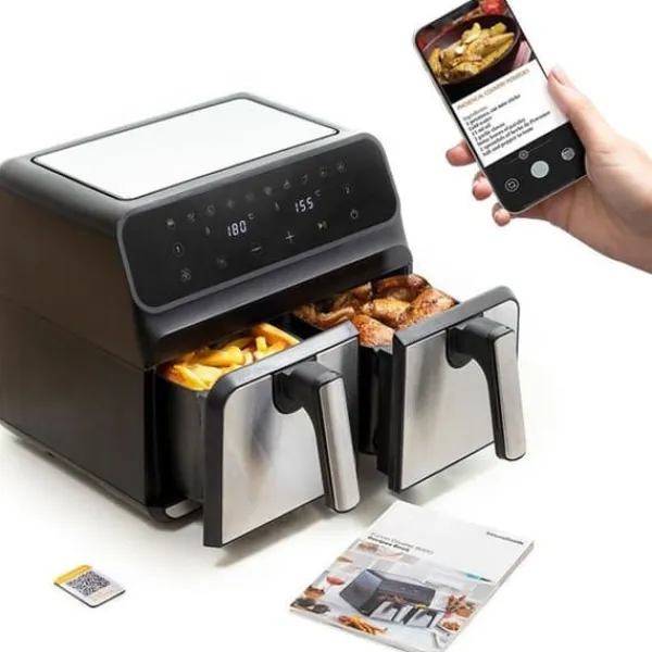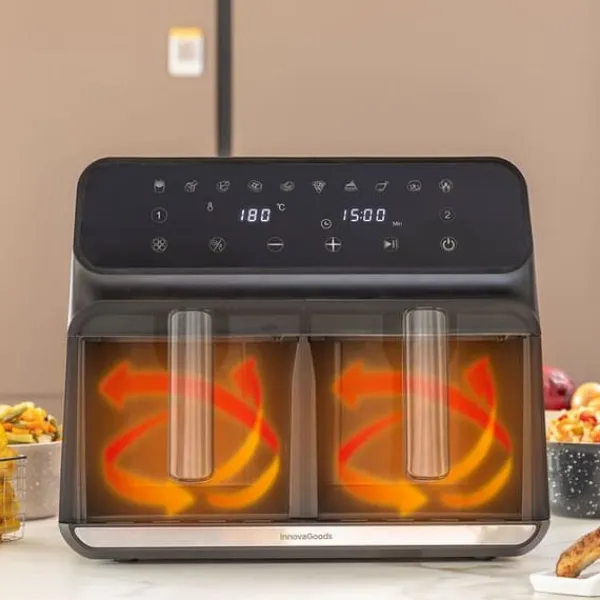 InnovaGoods 8L luftfritös är idealisk för att laga mat till flera personer. Med sin kompakta och moderna design gör den det möjligt att förbereda läckra rätter utan olja. Njut av fler än 100 recept på franska för att variera nöjen medan du bevarar kvaliteten.