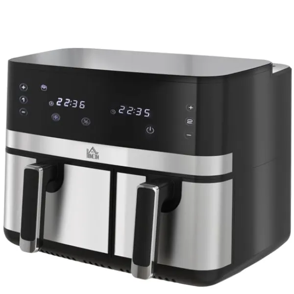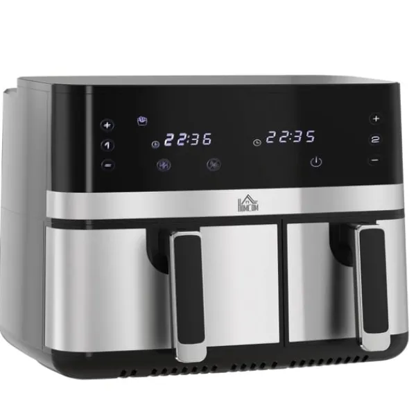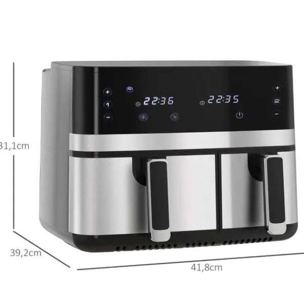 Dubbla njutningen med denna Rootz airfryer. Med två separata, individuellt styrbara, kan du tillaga två olika rätter samtidigt – perfekt för tidsbesparande förberedelse av en komplett måltid. Fritösens justerbara temperatur på 80-200°C gör att du kan laga mat på rätt värme, och 60-minuterstimern låter dig ställa in önskad tillagningstid utan att hela tiden behöva hålla ett öga på den.