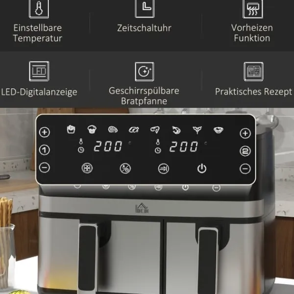 Smart Finish-funktion: Fritösens smarta finish-funktion säkerställer att maten är färdig samtidigt, vilket gör måltidsberedningen mer effektiv och bekväm.