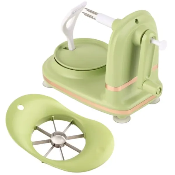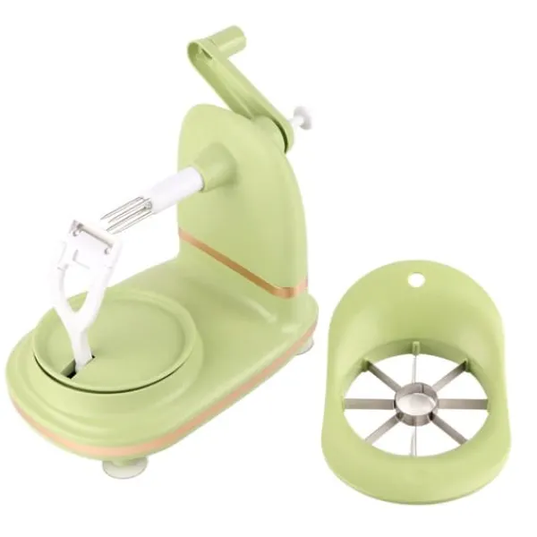 Denna äppelskalare har en lättanvänd design med en utsökt och liten kropp, vilket gör äppelskalningsprocessen trevlig. Rikta helt enkelt in mitten av frukten, sätt in den, rotera medurs i cirka 5 sekunder tills skalet tas bort och tryck sedan försiktigt på nyckeln för att dra ut frukten för att frigöra frukten.