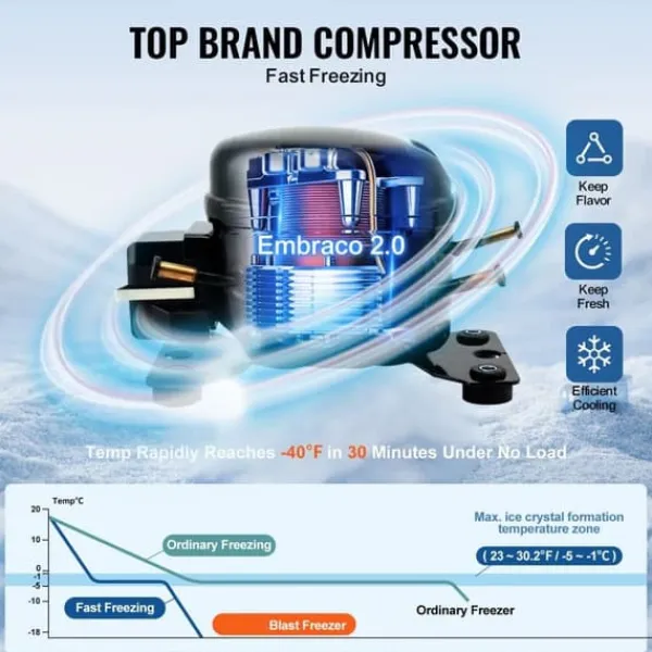 - Snabbfrysning av mat från höga till låga temperaturer på kort tid