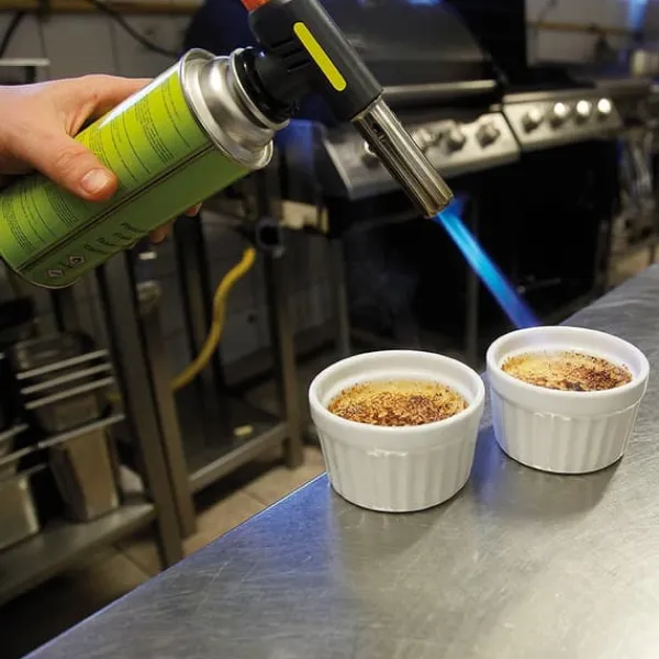 Producentnummer: MEVA KP18004 Den universelle gasbrænder fra MEVA er et universelt værktøj, der kan bruges både i catering- og turistindustrien samt i gør-det-selv-værkstedet. Den høje brændereffekt (1,6 kW) giver dig mulighed for at reducere gasforbruget ved kortvarig aktivering, og piezotænderen installeret i brænderen øger komforten ved at arbejde med produktet. Brænderen producerer en jævn flamme uanset arbejdsposition eller hældningsvinkel (efter 20 sekunders drift). Dens temperatur går fra 1400 til 1600°C, med et forbrug på op til 120 g/time. Dette giver dig mulighed for komfortabelt at tilberede desserter (f.eks. Creme Brulee), samt lodde, garve og udføre andet håndværk. Sættet indeholder fire gaspatroner (227 g) med brænder, som er en af de få på markedet, der brænder helt. Takket være dem er enheden klar til drift kun få øjeblikke efter udpakning! Derudover kan de bruges ikke kun til at arbejde med en brænder, men også i gaskomfurer, lamper, loddekolber, strålevarmere og turistradiatorer. Patronerne blev fremstillet i overensstemmelse med EN 417. Egenskaber og funktioner: – Virkningsgrad – Brændereffekt på 1,6 kW og flammetemperatur op til 1600°C, – Komfort – arbejde i enhver position og i enhver vinkel og flammejustering, – Økonomi – forbrug gas i niveauet 120 g/t, – Multifunktionalitet – fungerer godt i konfekture, lodning, garvning og andre håndværksarbejder, Tekniske parametre: – Model – KP18004 – Artikeltilstand – Ny – Brændereffekt – 1600 W – Flammetemperatur – 1400- 1600 °C – Gasforbrug – 120 g/t – Matchende patroner – med ventil KP02002 – Piezotænder – JA – Gas – butan – Patrontilslutningstype – ventil – Patronkapacitet – 227 g – Patrondimensioner (Højde x Diameter) – 200 x 68 mm – Sætmål (LxBxH) – 70 x 330 x 220 mm – Sætvægt – 1,65 kg Sættet indeholder: – Gasbrænder, – Patron med ventil 227 g (4 stk.)