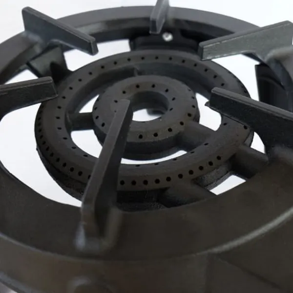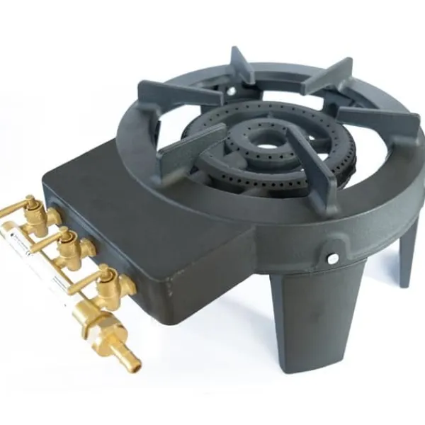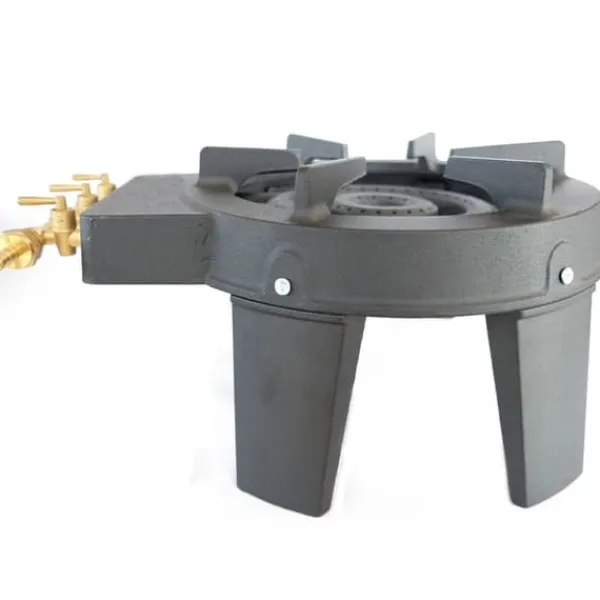 Gasspis från TRIGLAV-sortimentet i gjutjärn 4 ben hög effekt 9,8 kW – 3 flamjusteringsventiler Utrustad med dubbelkopplingssystemet på nippel eller anslutning på skruvbart gasrör, fungerar på butan eller propangasflaska med regulator. För proffs och privatpersoner idealisk för mottagningar, fester, matlagning i stora volymer.