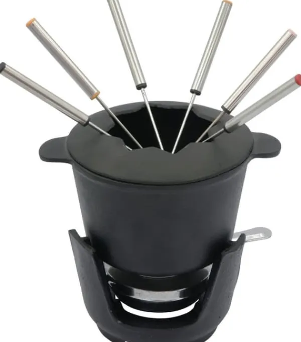 Fondue är en bra idé för en träff under långa kvällar. Mängden av recept på olika typer av fondue ger oss praktiskt taget obegränsade möjligheter att organisera en mängd olika måltider. Från traditionell ostfondue, via kött, grönsaker till frukt med choklad. Gjutjärn lagrar och fördelar värmen bra. Krukhöjd: 10 cm Krukdiameter: 17 cm Gaffellängd: 23,5 cm – Det perfekta setet för alla typer av fondue: kött, ost, choklad. – I satsen ingår: gjutjärnsställ, gjutjärnskittel med lock, brännare med lock, gafflar – 6 st – Allt förpackat i en elegant låda.