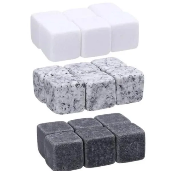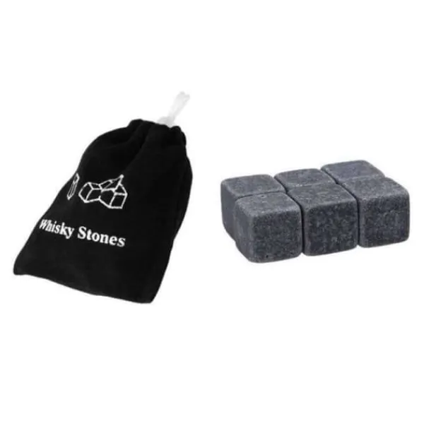 GL12729-Återanvändbara whiskystenar. 6 stycken. set med iskuber. vinkylning. bröllopsfest. vinkylare. Kök Barredskap.BAC A GLACON – SAC A GLACON.Förpackningsinnehåll:Grå