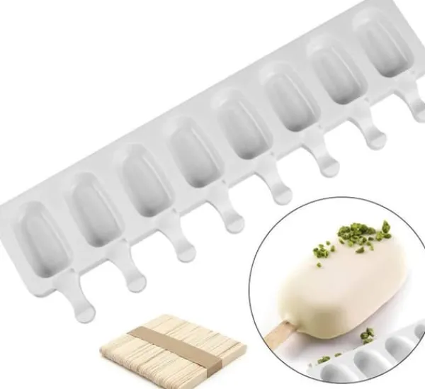 Formen i silikon är perfekt för egen hemmagjord glass med chokladtäcke, fräsch sorbet eller cakesicles gjorda på sockerkaka eller chokladkaka, se gärna vårt . 50 st glasspinnar medföljer, köp till ett för att säkra hela sommaren! Du kan använda denna form både i frysen och i ugnen upp till 210 grader Celcius.