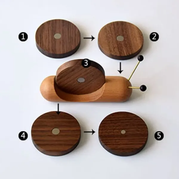 Välkommen till vår butik! Detta charmiga set med snäckunderlägg är utformat för att ge ditt hem både funktionalitet och stil. Underläggen har en härlig snäckform, vilket gör dem inte bara praktiska utan också en dekorativ detalj på ditt bord. Tillverkade av högkvalitativ nordamerikansk svart valnöt och tysk bokträ är dessa underlägg hållbara, slitstarka och vattentäta, vilket garanterar långvarig användning. Den inbyggda mässingsmagneten ger stark magnetisk kraft, vilket möjliggör snabb och enkel förvaring på den medföljande snäckformade magnetiska basen – vilket sparar både tid och utrymme. Varje underlägg är handpolerat med släta, rundade kanter för säkerhet och komfort. Setet innehåller 5 runda träunderlägg och 1 magnetisk förvaringsbas, med en total bruttovikt på 195 g (6,9 oz). Nöjdhet: Våra kunder är vår högsta prioritet. Om du upptäcker några produktproblem efter att du mottagit varorna, såsom skador eller felaktig mängd varor, vänligen kontakta säljaren omedelbart. Vi gör vårt bästa för att ge dig tillfredsställande kundservice.