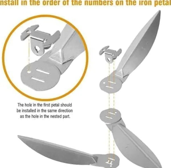 Montera bladen i nummerordning enligt märkningen. Hålet på det första bladet ska stämma överens med hålet på fästet för att spaken ska kunna rotera smidigt.