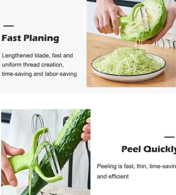 Grönsaksskalaren är gjord av ABS och stål, den är säker, vass och hållbar. Denna skalare kan göra din till mästare av att skära grönsaker snabbt.