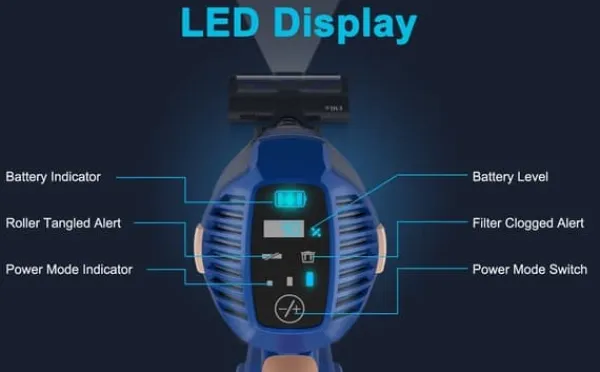 HEPA-filter & LED-belysning: Det avancerade HEPA-filtret fångar upp mikropartiklar och allergener, medan LED-borsten lyser upp mörka hörn för noggrannare rengöring.