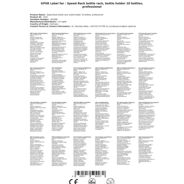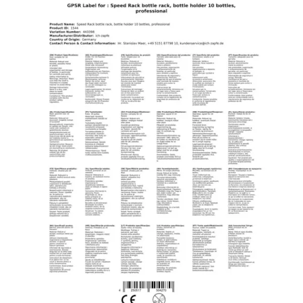Speed Rack Flaskhållare, Vinhållare – för 10 flaskor, professionell Egenskaper •Ordna din bar enkelt med vår Speed Rack-flaskhållare, som rymmer upp till 10 flaskor i olika storlekar från 0,7-1,0 l för maximal flexibilitet. •Öka din bars effektivitet med blixtsnabb tillgång till alla dina cocktailingredienser. •Maximera klarheten i din spritsamling med vårt innovativa flaskställ, vilket ger dina kunder en omedelbar överblick över ditt imponerande urval. •Det här hållbara flaskstället är byggt av rostfritt stål av högsta kvalitet och garanterar både ett professionellt utseende och långvarig prestanda. •Installera vår flaskhållare på din bardisk eller bakbuffé och se hur ditt arbetsflöde blir optimerat för maximal produktivitet. •Kompakt design (L 107 x H 16 x D 11 cm) maximerar ditt användbara utrymme och ger en idealisk lösning för även de minsta barerna. Förstärk ditt cocktailspel med vår Speed Rack-flaskhållare! Perfekt för alla barer – oavsett om det är en restaurang, lounge eller cocktailbar – detta flaskställ revolutionerar din barorganisation. Säg adjö till missade ingredienser och sök under diskar! Vår flaskhållare säkerställer snabb och enkel tillgång till alla ingredienser du behöver när du mixar dina cocktails. Vår innovativa design gör att du kan fokusera på den perfekta förberedelsen av dina cocktails utan onödigt letande – det är ren effektivitet! Men det är inte allt. Vårt flaskställ hjälper till att maximera din bars effektivitet samtidigt som vi erbjuder maximal synlighet av din spritsamling till kunderna. Låt dem förundras över ditt imponerande urval av sprit och den rena rena arbetsytan! Den premiumkonstruktion i rostfritt stål säkerställer att vår flaskhållare inte bara erbjuder ett professionellt utseende utan också långvarig prestanda. Dessutom är den kompatibel med olika flaskstorlekar, vilket gör den till den perfekta lösningen för barer av alla storlekar. Tack vare den enkla installationen är vår flaskhållare lätt att placera på bardisken eller bakbuffén. När du väl har installerat den kommer du att se en ökning av produktiviteten med förbättrad arbetsflödeseffektivitet. Vår flaskhållares kompakta mått möjliggör maximal utrymmesbesparing, vilket gör att du kan använda det frigjorda området för andra ändamål. Och om du väljer att använda 0,7 l flaskor får du mer än tio flaskplatser! Investera i vår Speed Rack-flaskhållare idag och upplev den ultimata barorganisationen själv! 10 meningar för ökat försäljnings- och produktintresse: •Omfamna framtiden för bartending med vår innovativa lösning för flaskställ. •Revolutionera din arbetsplats med ett enkelt organisationssystem. •Den banbrytande designen säkerställer maximal synlighet för din spritsamling. •Speed Rack är kompatibelt med alla flaskor i standardstorlek och erbjuder ultimat flexibilitet. •Långvarig prestanda och ett professionellt utseende gör vår flaskhållare till den perfekta investeringen för ditt företag. •Upplev blixtsnabb tillgång till alla dina cocktailingredienser, så att du kan skapa perfekta drinkar varje gång. •Lös alla organisationens behov med en enda lösning – Speed Rack-flaskhållaren för 10 flaskor. •Vår flaskhållares kompakta design säkerställer att den passar alla utrymmen, oavsett hur liten den är. •Effektivt arbetsflöde är nyckeln till att driva en framgångsrik bar, och vår flaskhållare hjälper dig att uppnå just det. •Optimera din bartenderverksamhet med vår innovativa lösning för flaskställ idag!