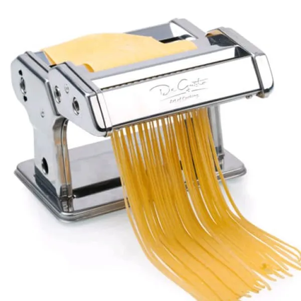 De Gusto pastamaskin med tillbehör gör det inte bara enklare att kavla och skära deg, utan tar också hand om texturen och tjockleken på varje makron. Kvaliteten som De Gusto pastamaskin erbjuder beror på dess raffinerade design och teknik. Se själv att hemlagad pasta inte bara är ett tillskott till såsen, utan den verkliga stjärnan i det kulinariska spektaklet!