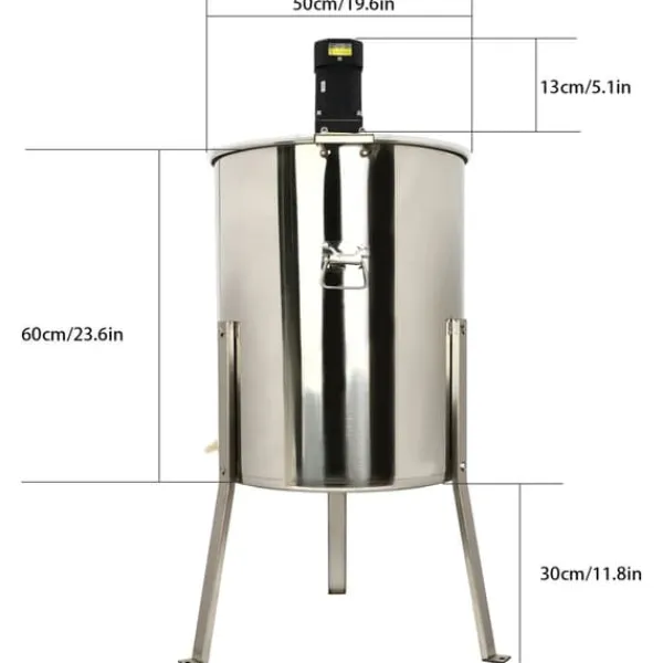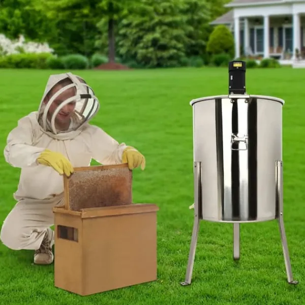 Elektrisk honungsslunga för 8 ramarDenna cylindriska honungsslunga med 220 V och 140 W vertikalmotor gör honungsskörd snabbare och enklare. Den rymmer 8 ramar (4 små, 4 standard) och arbetar runt 370 varv/min – perfekt för hobbybiodlare och småskaligt bruk.