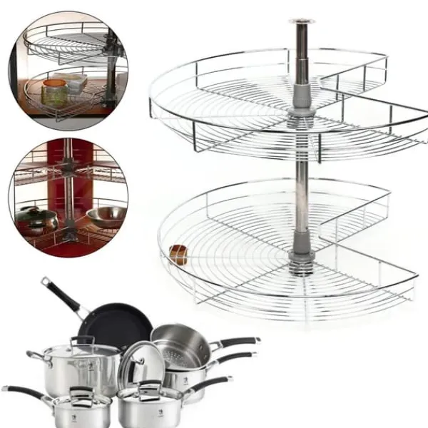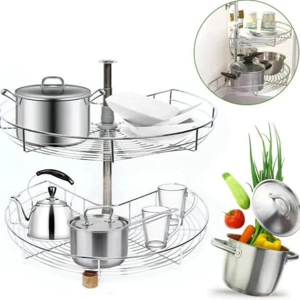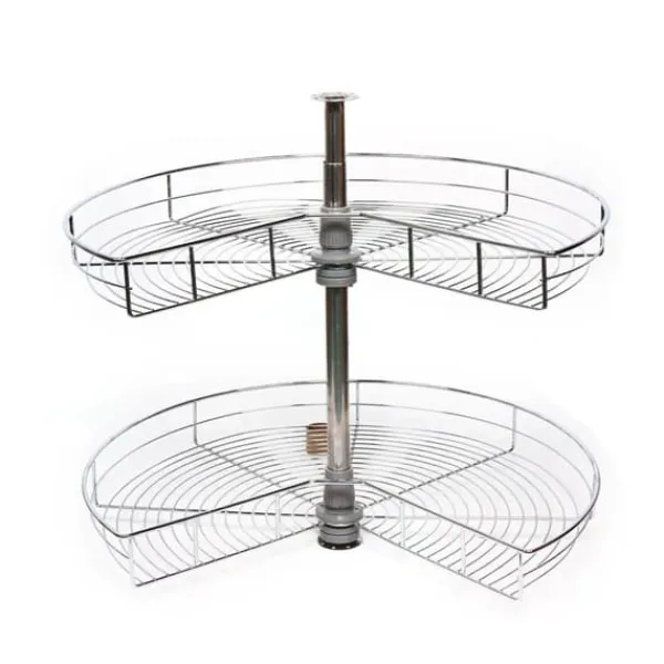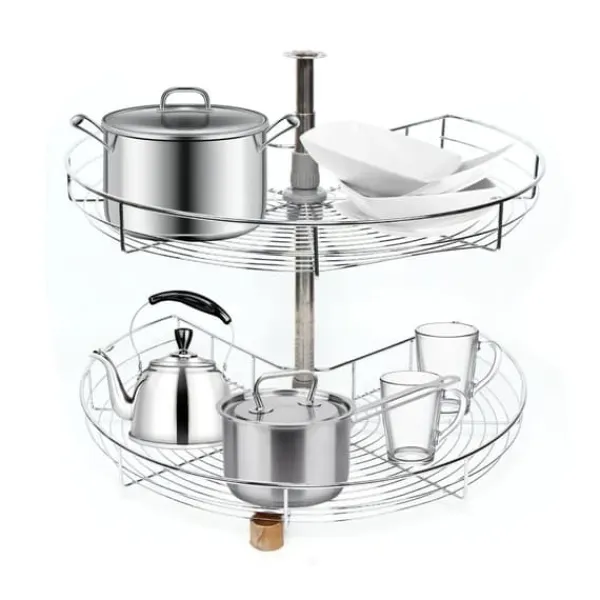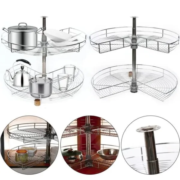 270° roterande hörnkarusell i stål för underskåpDenna dubbellagers utdragbara trådkorg i silver förvandlar svåråtkomliga hörn till lättillgänglig förvaring. 270° rotation, robust järnram och smidig åtkomst gör köksorganisationen enkel och effektiv.