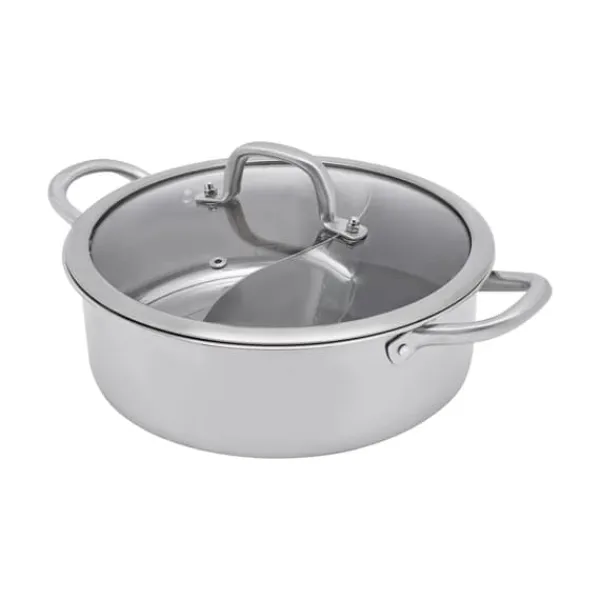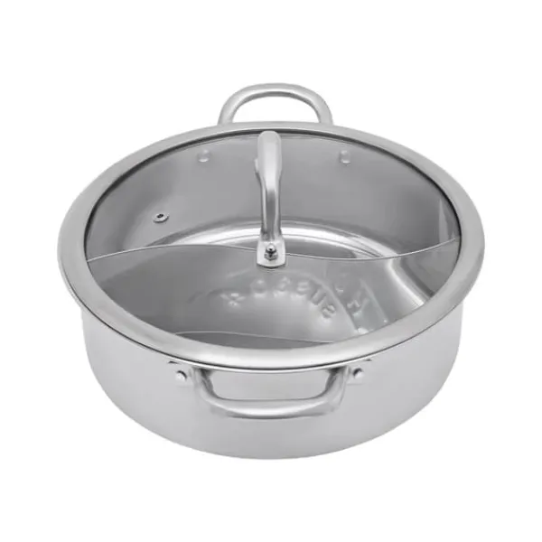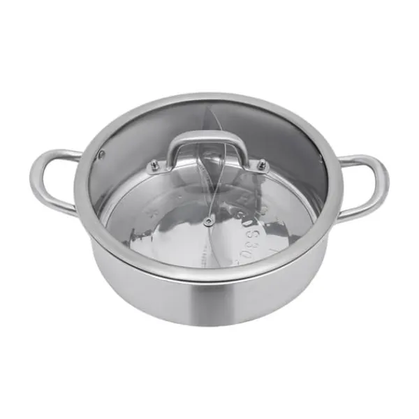 Hot pot i 304 rostfritt stål med delare – 12,6 tum-variantNjut av två smaker samtidigt i samma gryta. Denna hållbara hot pot i 304 rostfritt stål har en glaslock och plan botten för jämn värme. Färg: armégrön.
