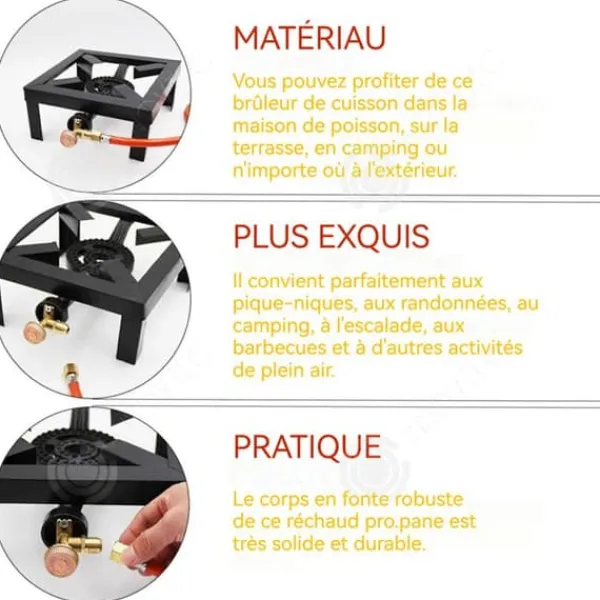 4. Material: Tillverkad av högkvalitativa material, är denna utomhusspis robust och hållbar. Den kan hantera olika typer av matlagning och är oumbärlig för matlagning vid camping.