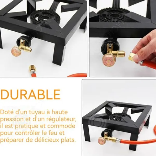 Beståndsdelar: Gjutjärnsspis + högtrycksslang + tryckregulatorventil