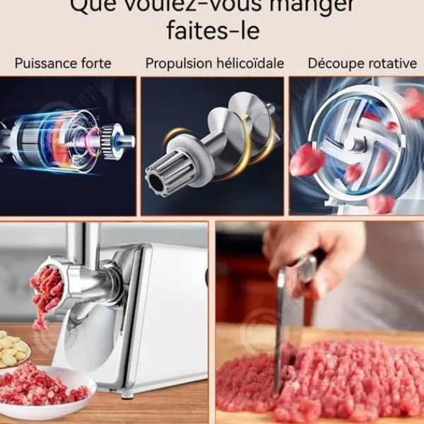 1, Mångsidig kök: Denna elektriska korvfyllare kan inte bara hacka kött utan också förbereda korvar, heta såser, vitlökspuré osv., vilket uppfyller olika kulinariska behov.