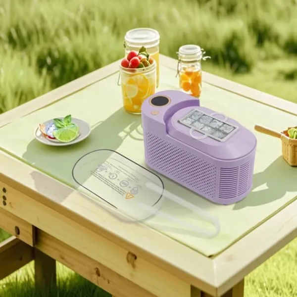 Bärbar ismaskin i LILA Njut av iskalla drycker när som helst med denna kompakta ismaskin som snabbt gör klara, klassiska fyrkantiga isbitar. Den tar minimalt med plats, arbetar tyst och levereras i elegant lila – perfekt för hemmet, kontoret och bilen.