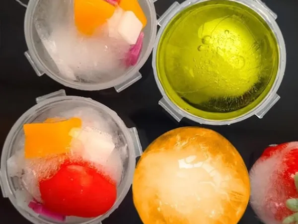 För att ge kulorna en finare look kan du lägga till frukt, en skiva citron, myntablad och vad din fantasi säger åt dig att lägga till i mitten tillsammans med vatten (eller juice).