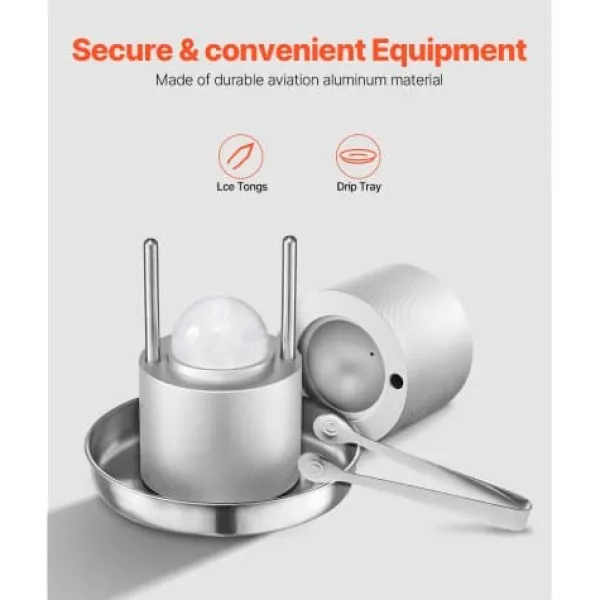 Skapa perfekt runda isbollar snabbt och enkelt med denna ispress i flygplansaluminium, designad för att förhöja din whiskey, cocktails och andra drycker. Dess hållbara konstruktion garanterar långvarig prestanda, medan de medföljande tången och droppbrickan håller din arbetsyta ren. Den eleganta förpackningen gör den också till en idealisk present för alla tillfällen.