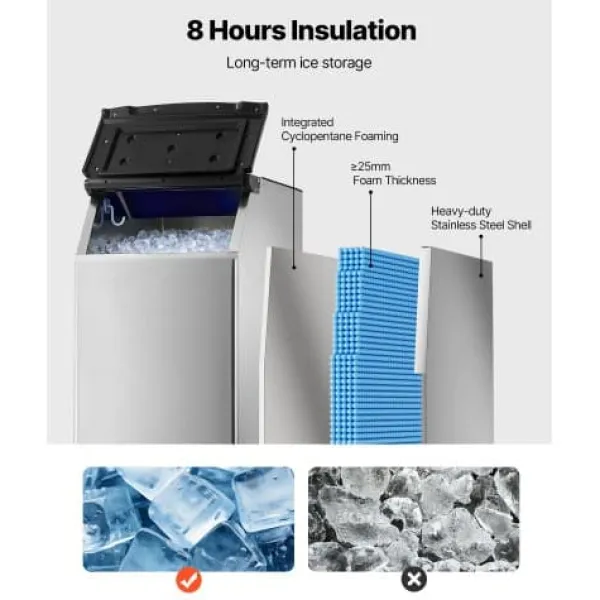 Denna kommersiella isförvaringslåda är utformad för att möta de höga kraven från restauranger, hotell och dryckesbutiker, och erbjuder gott om isförvaring samt effektiv isolering för att hålla isen fräsch i timmar. Dess robusta konstruktion i rostfritt stål, justerbara halkfria fötter och automatisk dränering säkerställer pålitlig prestanda och enkel underhåll i hektiska miljöer.