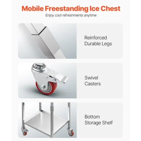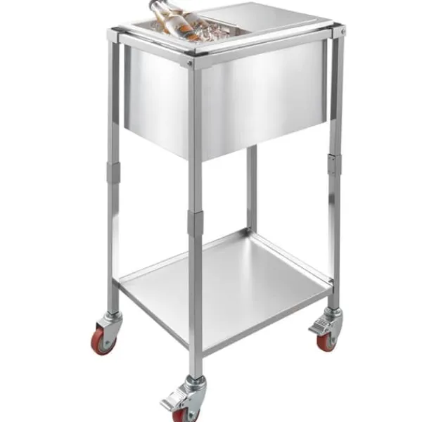 Utrustad med svängbara hjul för enkel transport och en nedre förvaringshylla för optimal organisering. Mycket lämplig för restauranger, hotell, internetcaféer och fester, och perfekt även för utomhusbruk utan behov av kylskåp.