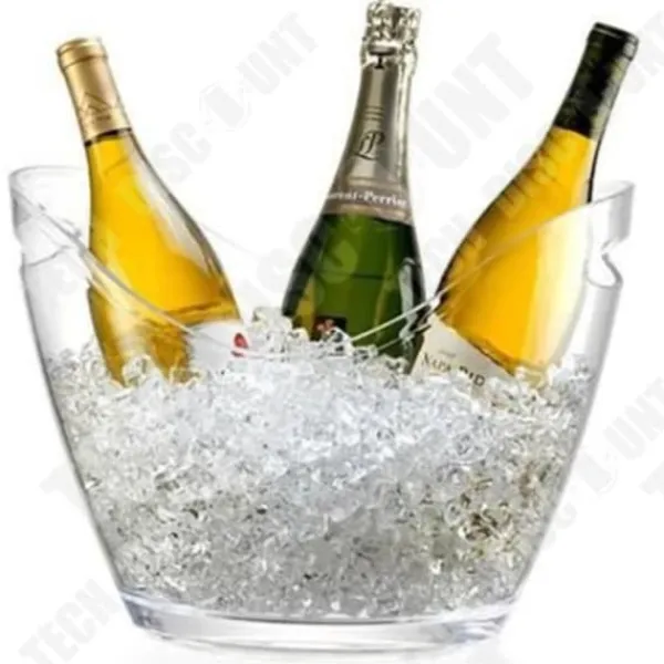 Den eleganta champagnekylaren kan rymma upp till 3 flaskor. Tillverkad av robust plast, mäter den 34 cm lång, 26 cm bred och 24 cm hög. Perfekt för att hålla dina drycker kalla vid dina evenemang.