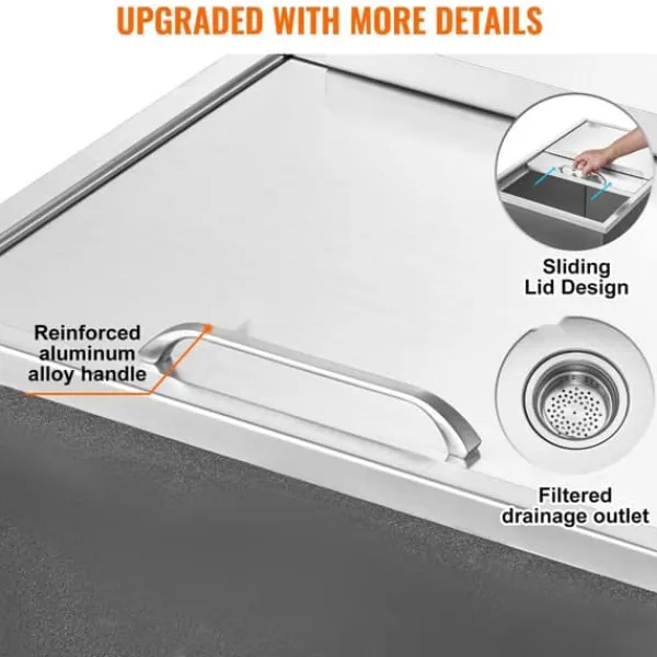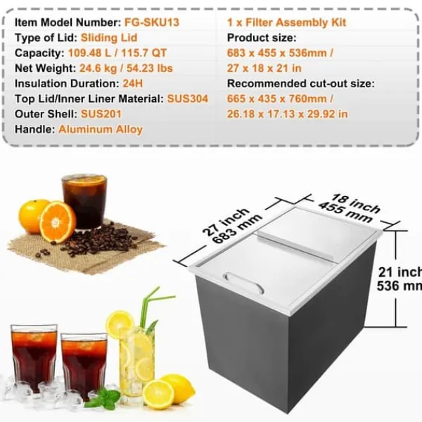 Utrustad med vattenrör i filterstil för enkel installation och underhåll. Dräneringsfunktionen håller iskistan torr och hygienisk, med ett filternät som förhindrar isbitar från att falla ut.