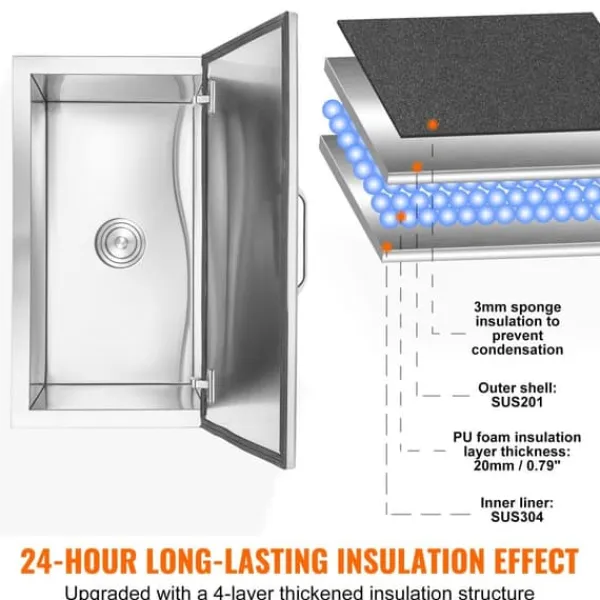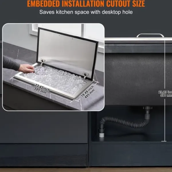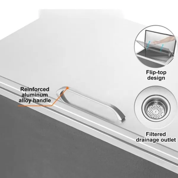 Med sin imponerande kapacitet är denna isbehållare perfekt för alla tillfällen som kräver stora mängder is eller kalla drycker. Den exceptionella isoleringsförmågan gör att den håller dryckerna kylda i timmar utan behov av elektricitet. Dess livsmedelskvalitetsmaterial är både hållbart och rostbeständigt och ger en långvarig lösning för kylbehov. Den enkla installationen och det smarta filterröret gör användningen till en lätthet. Dess inbäddade installation är idealisk för olika platser och sparar ovärderligt utrymme.