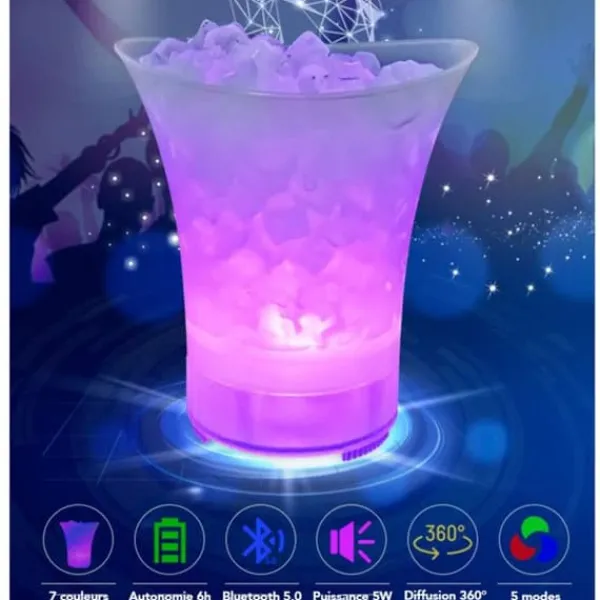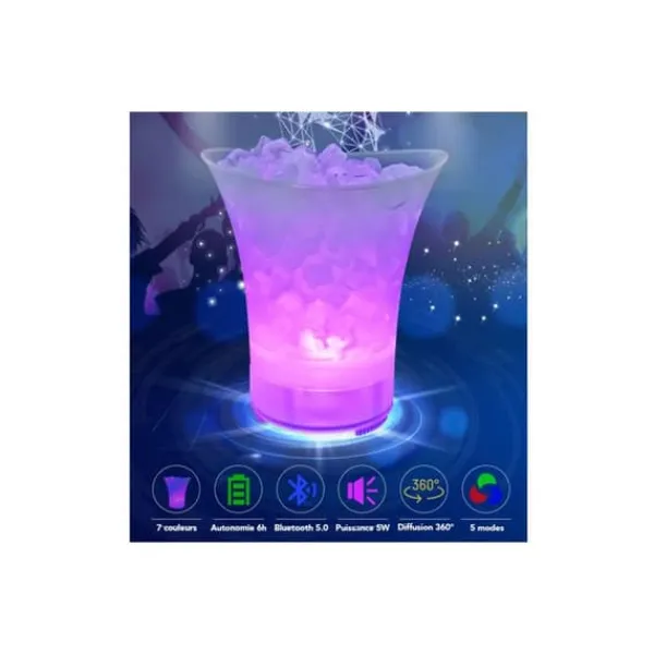 Teknisk information: Dimensioner: D. 25 x H. 28,9 cm Specifikationer: Praktisk & Trendig Bluetooth isbalja med högtalare & LED Övergång 7 färger & 5 lägen Anslutning: Bluetooth V5.0 Batteritid: 6 timmar Frekvens: 120Hz-18KHs Uppladdningsbart batteri: 1200mAh Högtalareffekt: 5W 360° ljud Sprallig form Volym: 5L Vikt: 0,72 kg Färg: Vit