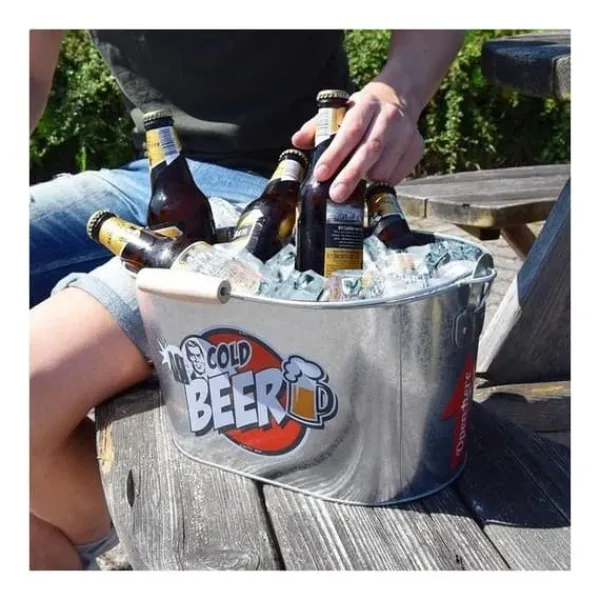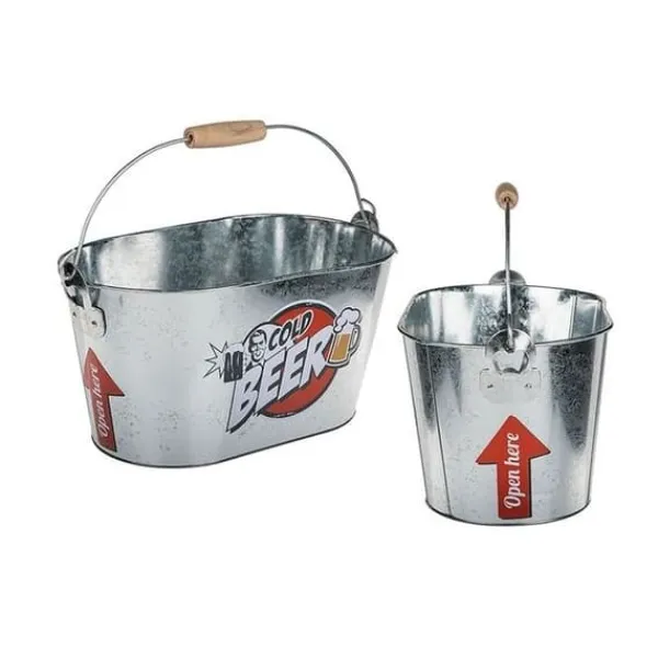 Håll ölflaskorna kalla med denna isbucket. Det är en praktisk behållare perfekt för fester. Den är utrustad med två flasköppnare i botten av varje sida av handtaget. Perfekt som present.* Dimensioner: 26 x 13 cm * Material: metall, handtag av trä * 2 flasköppnare ingår Funktioner: isbucket Innehåll: 1 Cold beer isbucket med integrerad flasköppnare