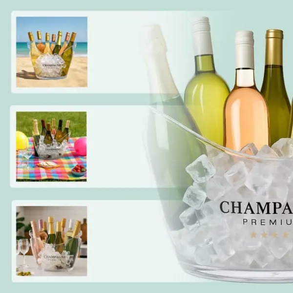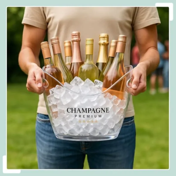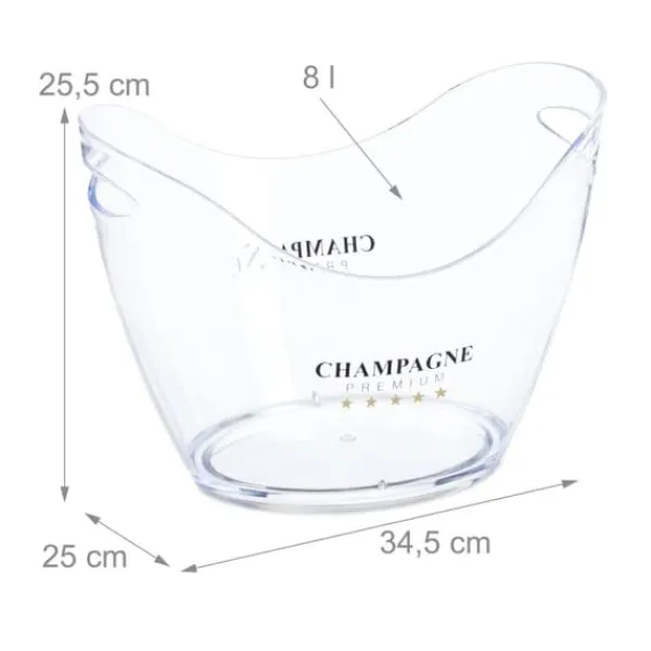 Denna klara champagne-isbalja är perfekt för att hålla vin, mousserande vin och champagne kylda under trädgårdsfester, uteplatser eller grillkvällar. Dess moderna, splitterresistenta design med sidhandtag säkerställer säker och enkel transport, medan den stilfulla texten ”Champagne Premium” ger en elegant touch.