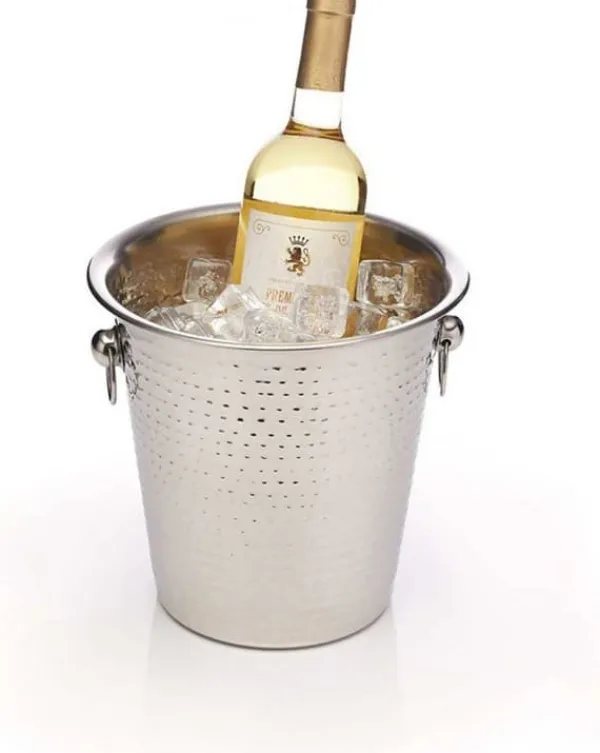 En hink för kylning av champagne, vitt vin eller vodka i is. Nödvändigt på varje restaurang men också effektivt under en hemmafest. Det kommer att säkerställa rätt temperatur på drycken utan att behöva ställa flaskan i kylen – Rostfritt stål – Storlek: Ø22 x 21 cm