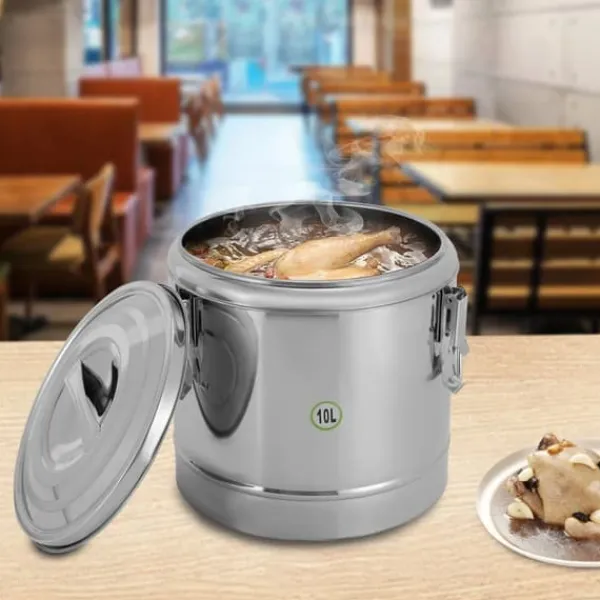 Isolerad sopptank med lock – 10 l, ljusgråEn robust och stilren behållare i rostfritt stål som håller mat varm eller kall under lång tid. Med 10 l kapacitet, bred öppning och smidiga handtag passar den lika bra i hemmet som vid bjudningar eller servering – i elegant ljusgrå.