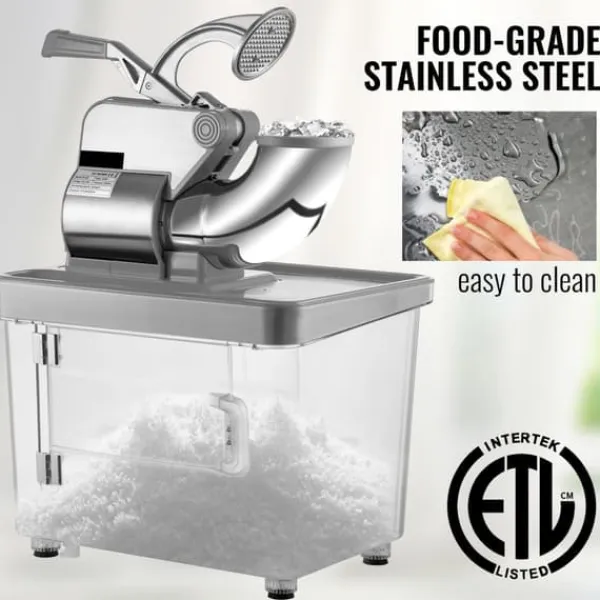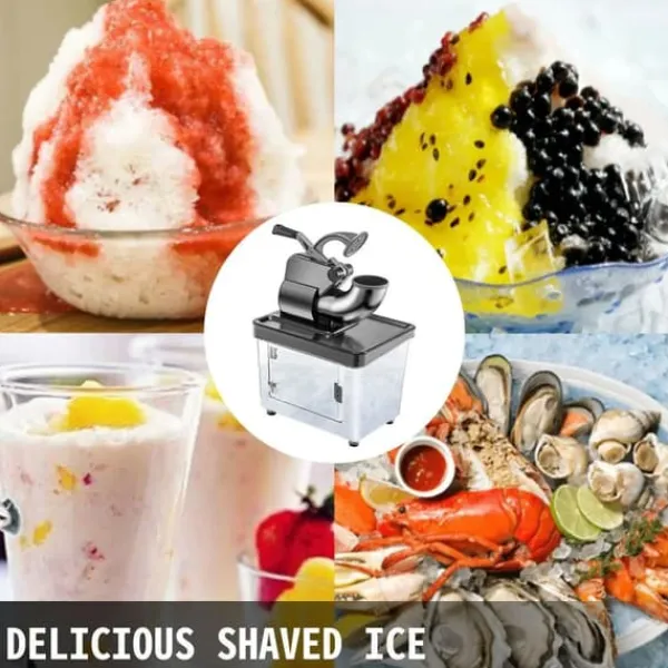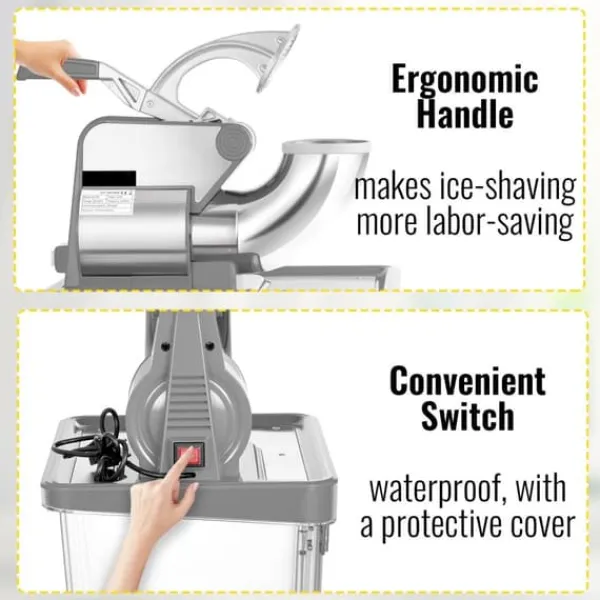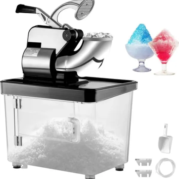 Vår elektriska israkapparat har ett vackert utseende och kraftfull prestanda. Inbyggd 300W kopparmotor kan krossa 396,8 pund (180 kg) is per timme, vilket ger dig mjuk, fluffig, pudrig snö och is för att möta dina behov på kortare tid.