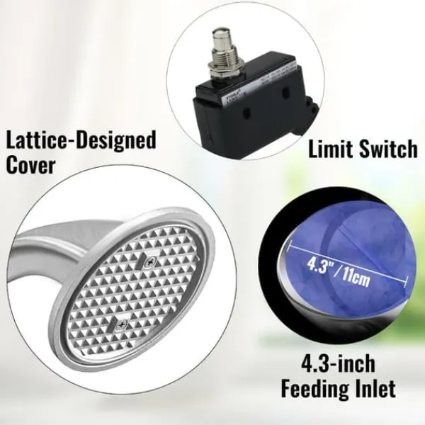 -Detaljer för bekväm användning: Denna snökonmaskin har också en genomtänkt design utformad för att förbättra din användarupplevelse. Det halkfria handtaget är ergonomiskt utformat för enkel användning. Nedanför finns ett vattenutlopp som kan släppa ut smält is i tid. Gummifötter på undersidan stabiliserar maskinen. Gränslägesbrytare används för ökad säkerhet. Vattentät på/av-kontroll minimerar driftsrestriktioner när händerna är våta.