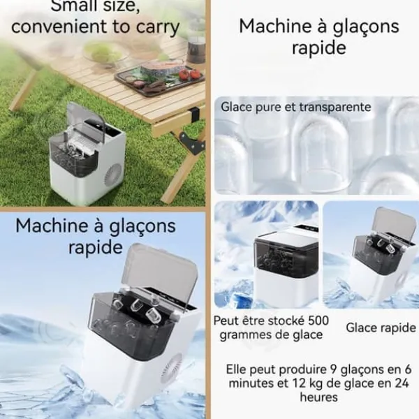 4. Hög kvalitet: Tillverkad av livsmedelsklassade material är denna ismaskin hållbar och byggd för att hålla, vilket ger dig sinnesro. Njut av kalla drycker, iskall kaffe, hemmagjord glass, snacks och mycket mer hemma. Idealisk för köket, kontoret, ett café, en bar, camping, husvagn eller en fest.